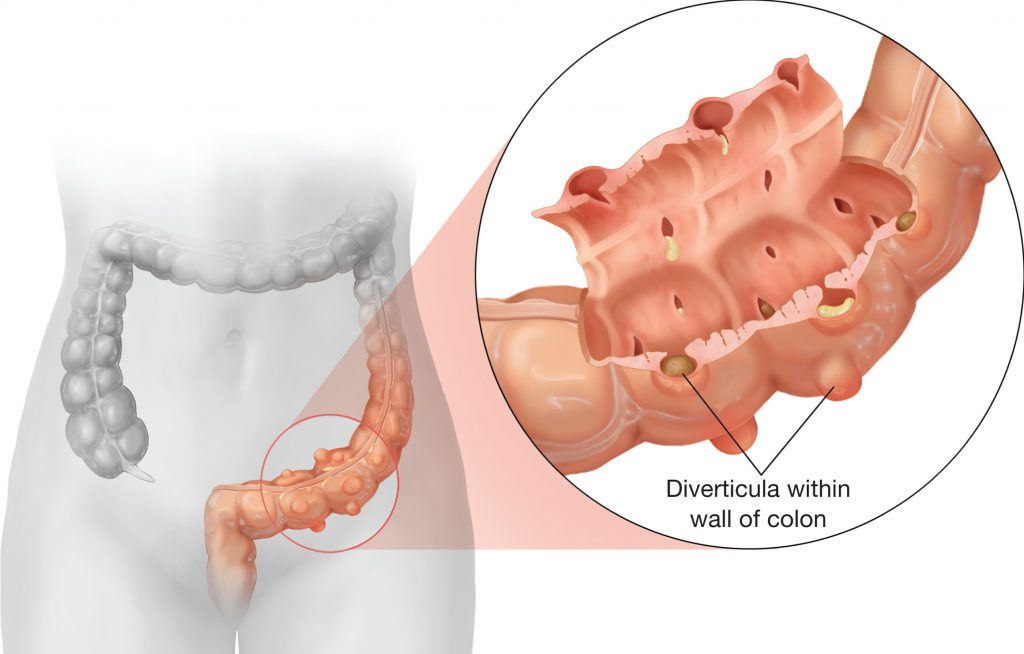 Использование стимулирующих слабительных средств, обезболивающих на основе морфина при дивертикулах противопоказано, так как они провоцируют дальнейшее нарушение моторики кишечника, усугубляют течение болезни. Для улучшения пассажа пищевых масс по кишечнику назначают осмотические слабительные средства – они увеличивают объем каловых масс и ускоряют их продвижение по пищеварительному тракту. При диарее назначаются сорбенты и вяжущие средства, для купирования метеоризма – препараты симетикона.